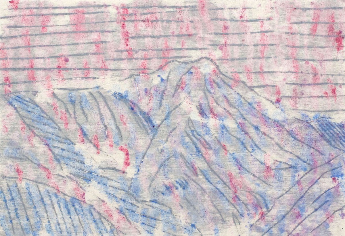 Theodore Ereira-Guyer, Mountain II (Postcard Sent to Velorose from Portugal, 2020), Woodcut Print on Paper (Unique) (Not for Sale)