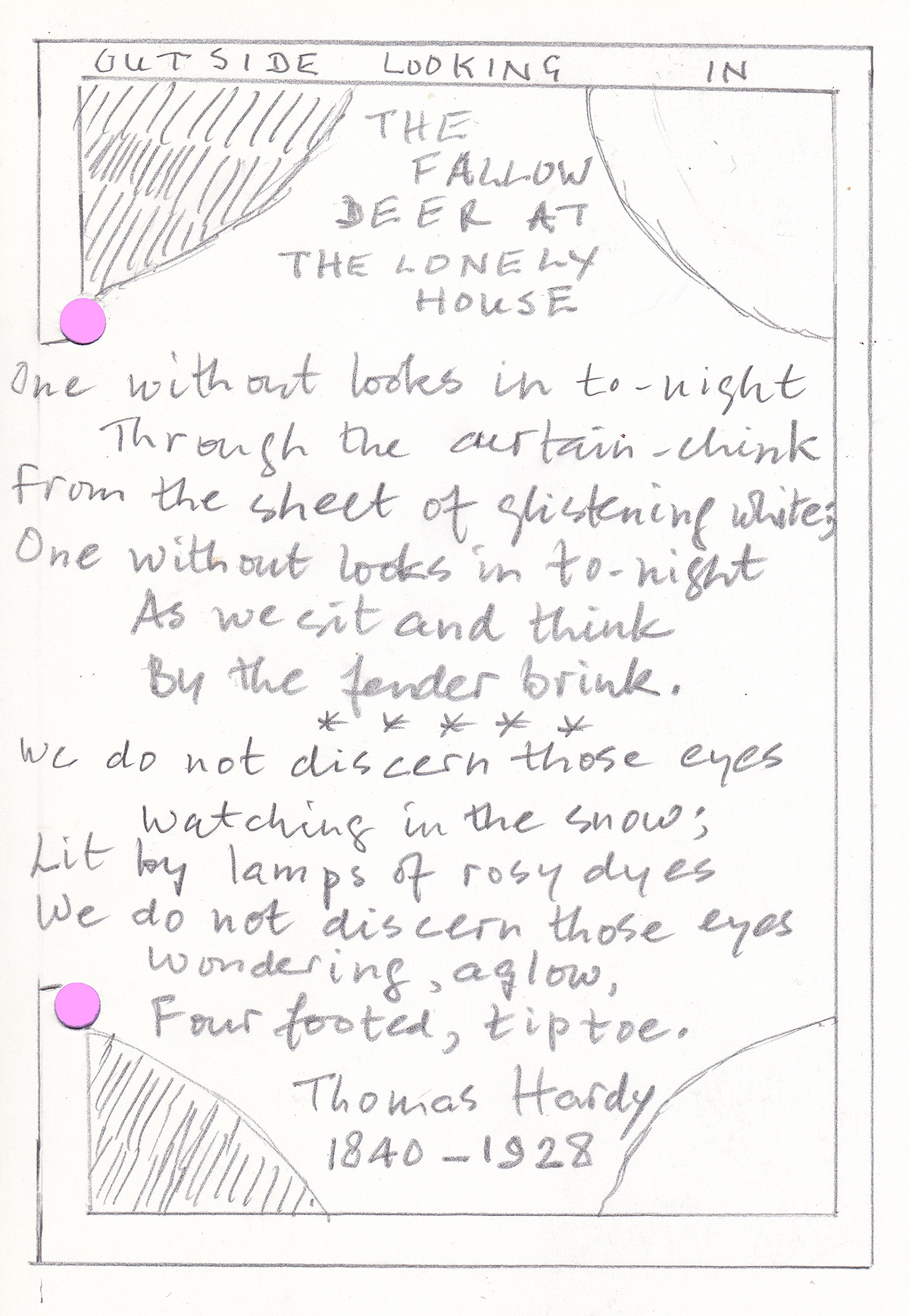 Amsterdammer, Outside Looking In (The Fallow Deer at the Lonely House) (Postcard Sent to Velorose from London, 2020), Pencil on Paper with Punched Holes (Unique) (Not for Sale)
