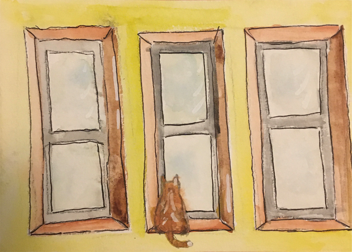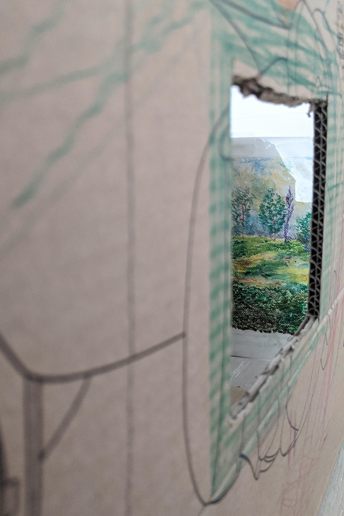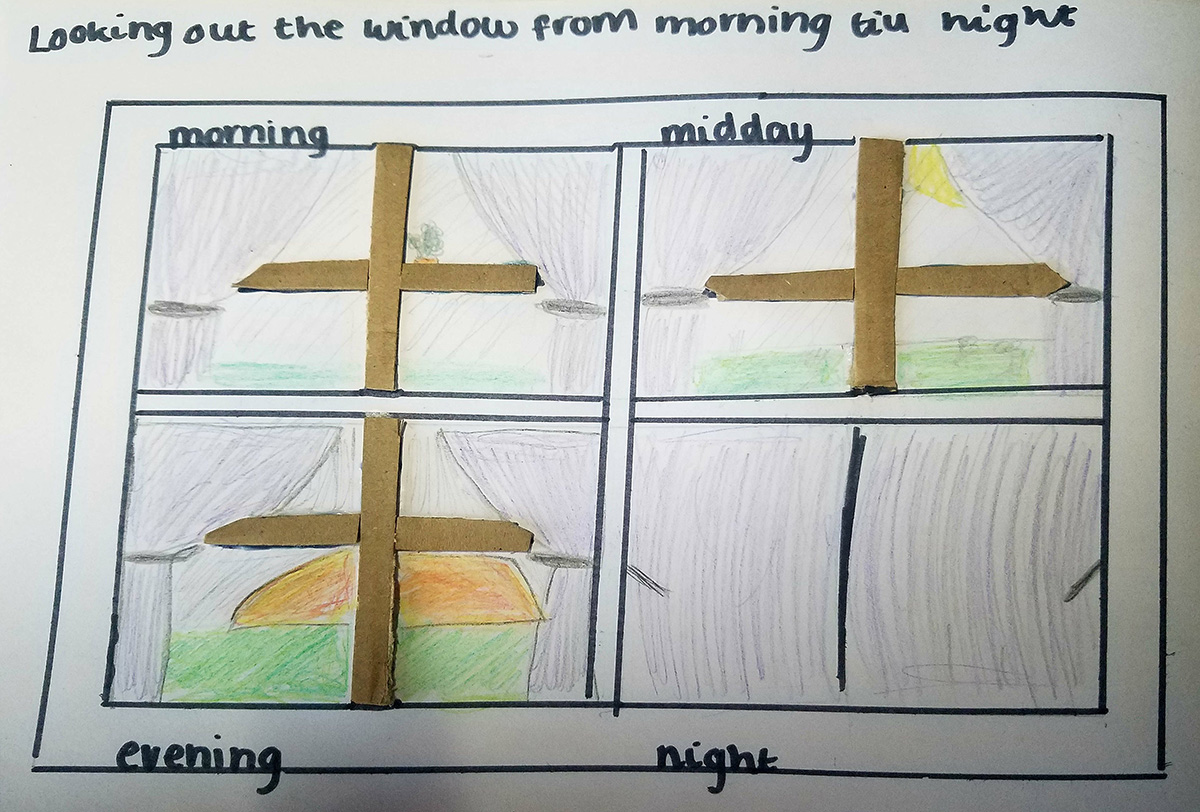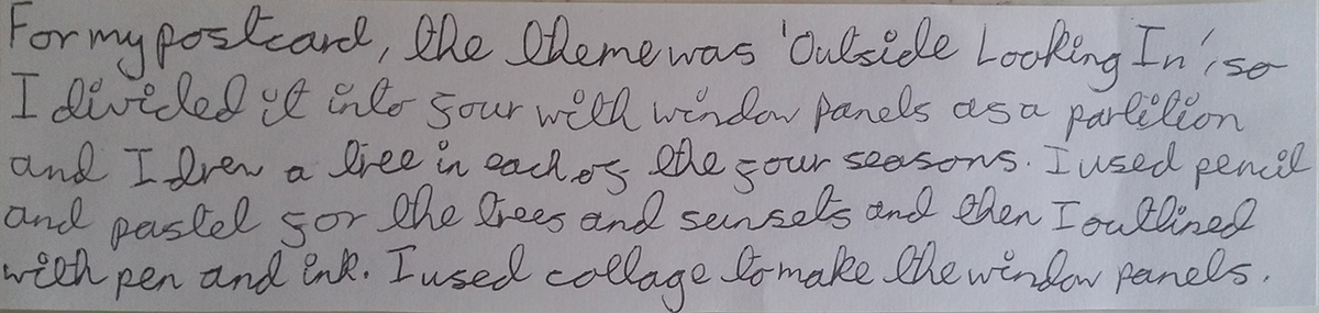Poppy (Year 8, Green School for Girls), Looking Out the Window from Morning till Night (Postcard Sent to Velorose from London, 2020) Felt Pen and Corrugated Card on Paper (Unique) (Not for Sale)