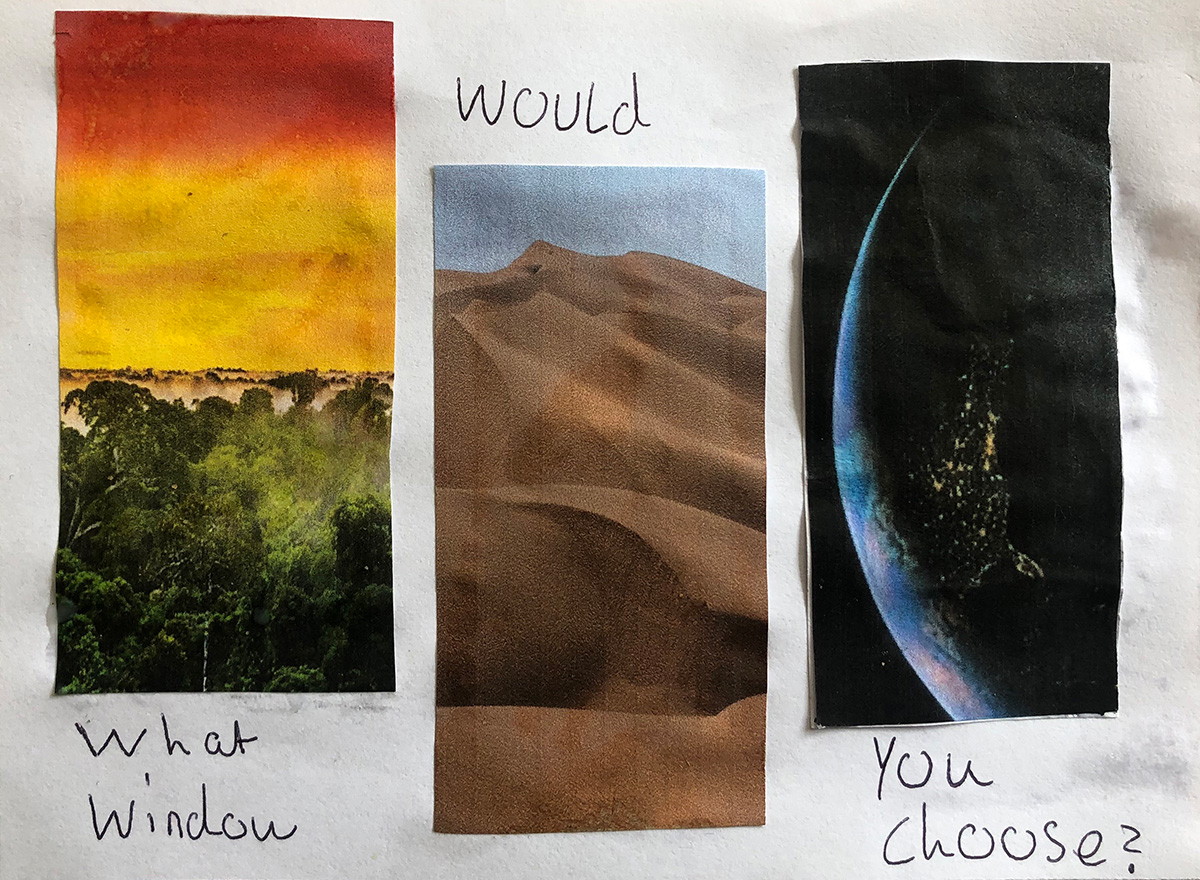Miles (Year 9, Green School for Boys), What Window Would You Choose? (Postcard Sent to Velorose from London, 2020) Collage and Pen (Unique) (Not for Sale)