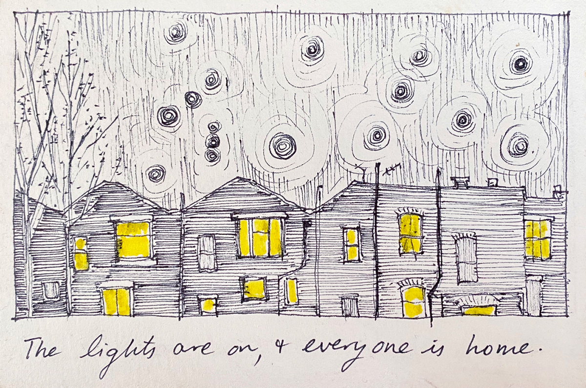 Julia Hamson, The Lights are On, + Everyone is Home (Postcard Sent to Velorose from London, 2020), Felt Pen on Card (Unique) (Not for Sale)