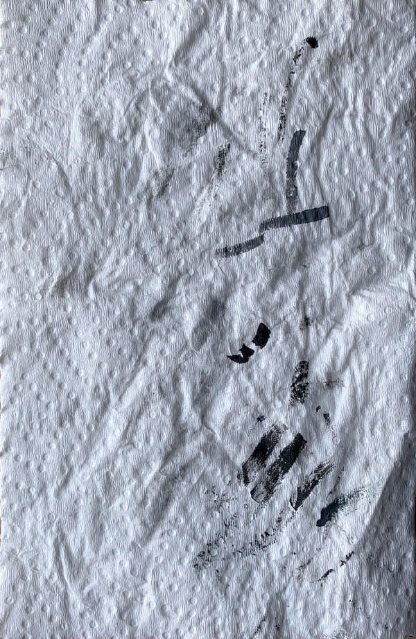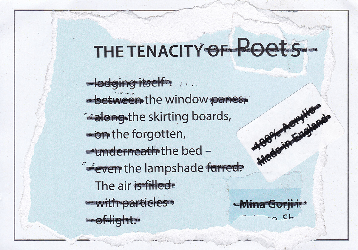 Anonymous (Not Mina Gorji), The Tenacity of Poets (Postcard Sent to Velorose from London, 2020), Torn Paper and Felt Pen on Card (Unique) (Not for Sale)
