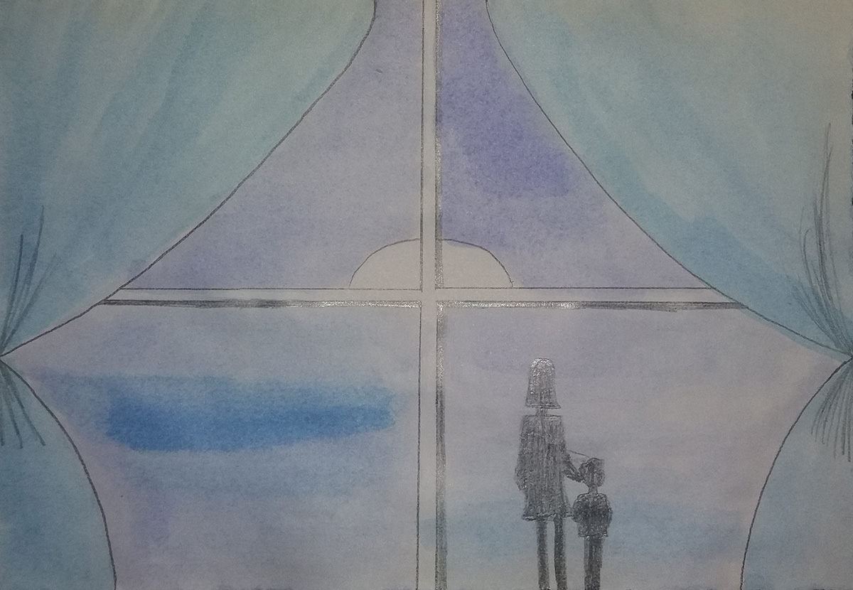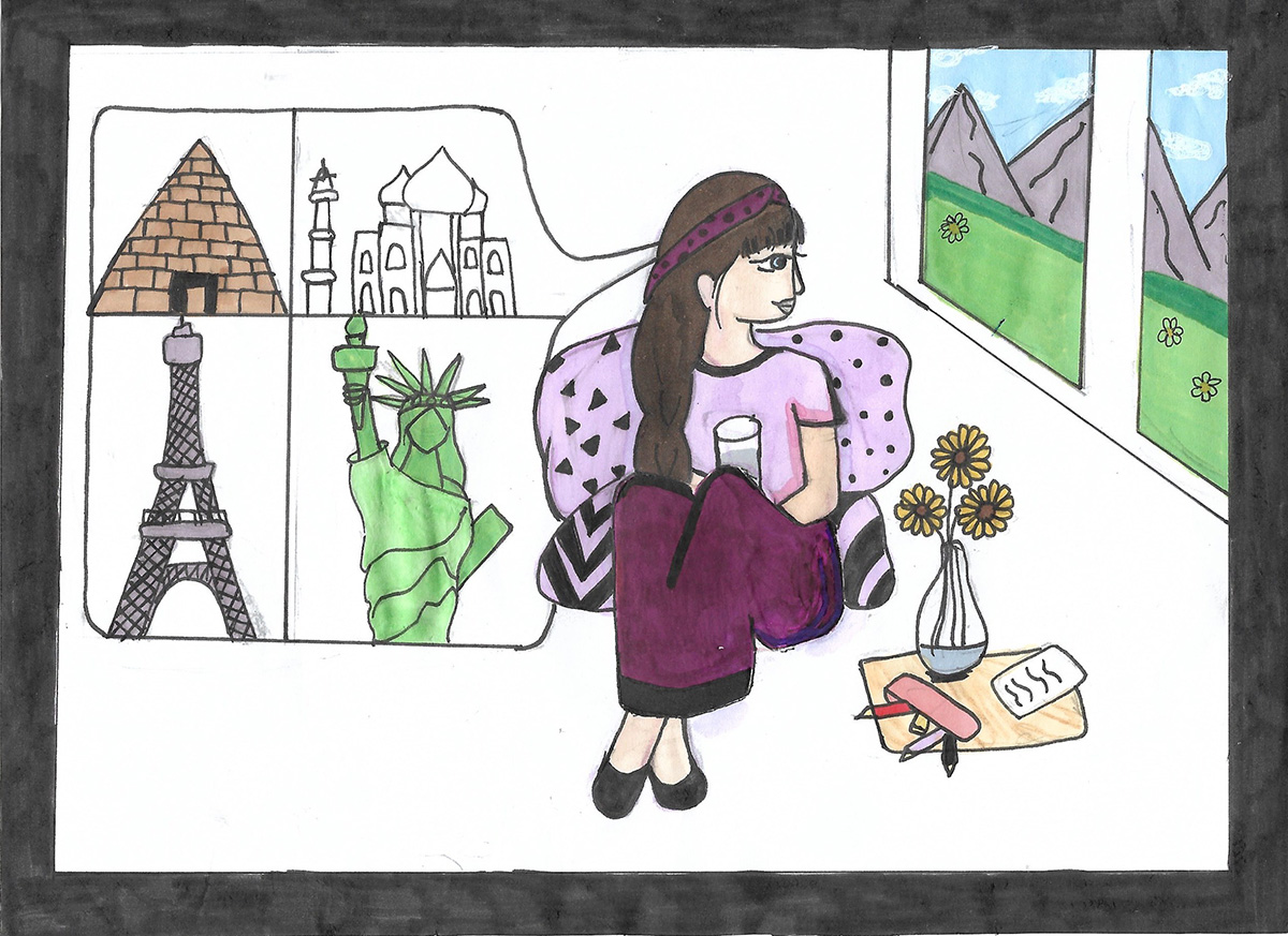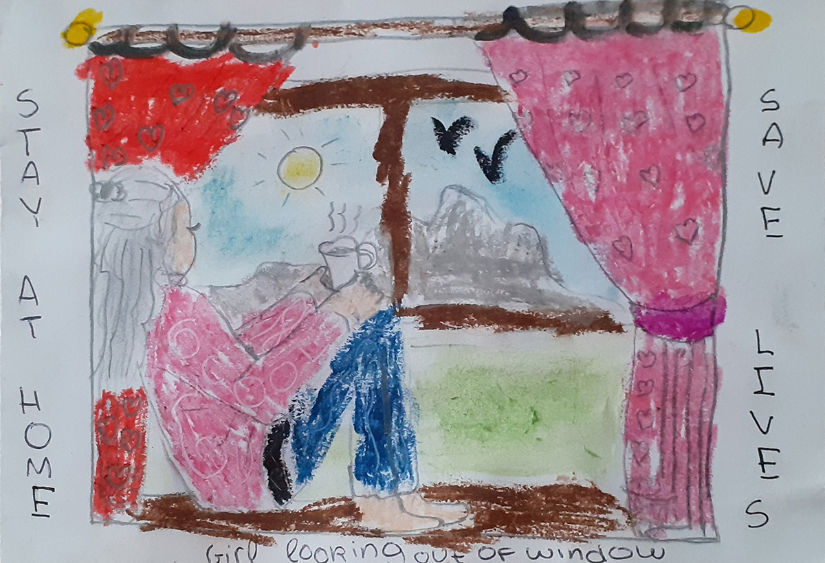 Anugayathri (Year 9, Green School for Girls), Girl Looking Out of Window (Stay at Home, Save Lives) (Postcard Sent to Velorose from London, 2020) Pencil and Pastel (Unique) (Not for Sale)