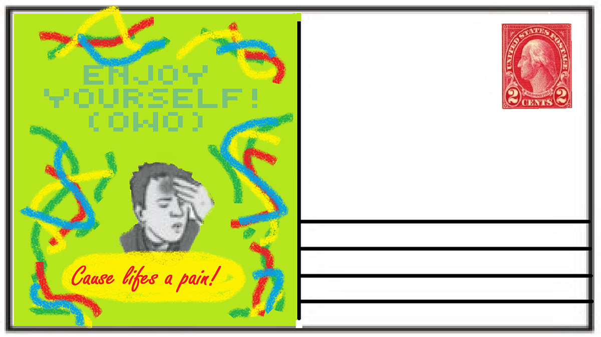 Aunrei (Year 9, Green School for Boys), Untitled (Enjoy Yourself!) (Postcard Sent to Velorose from London, 2020) Digital Drawing and Collage (Unique) (Not for Sale)