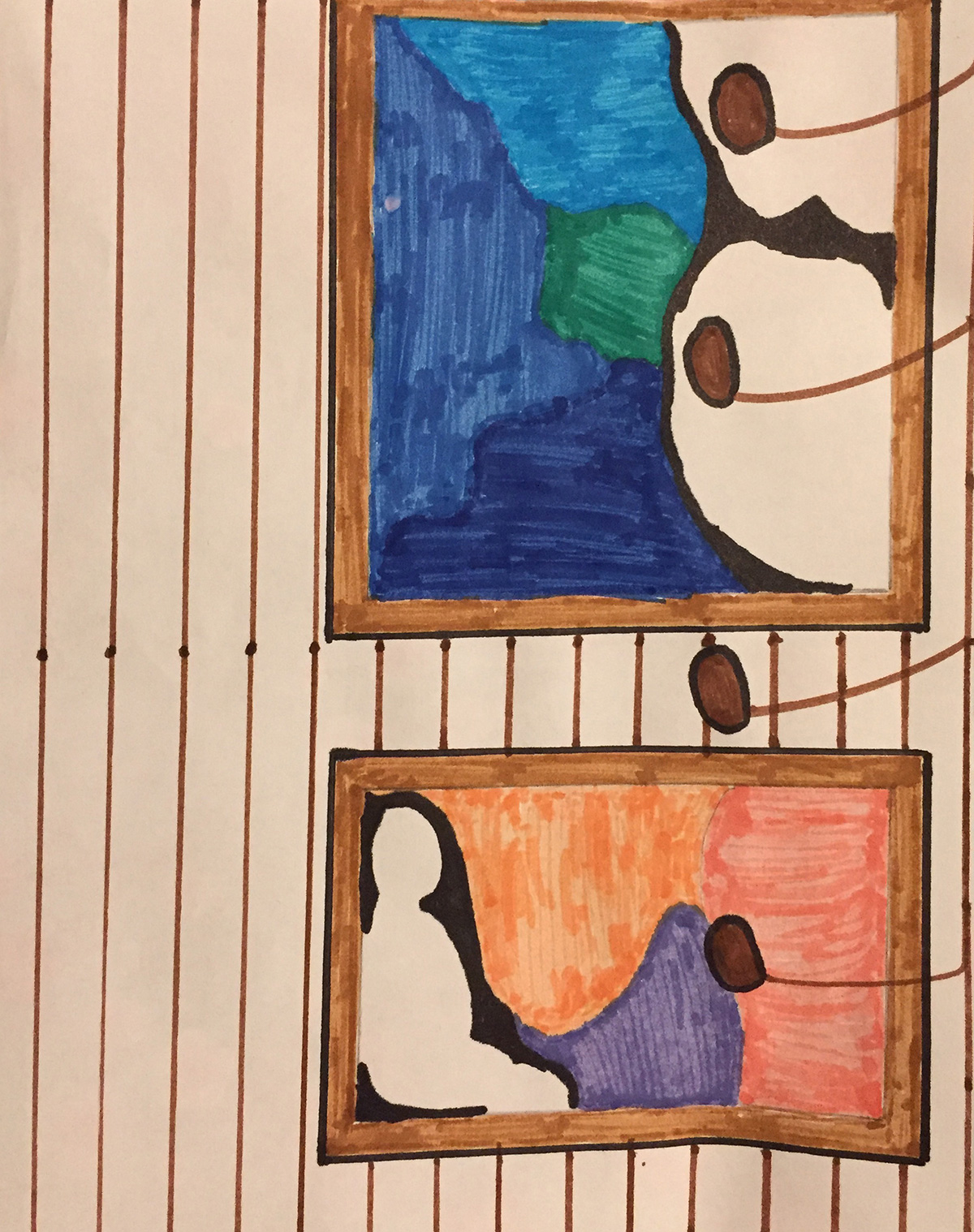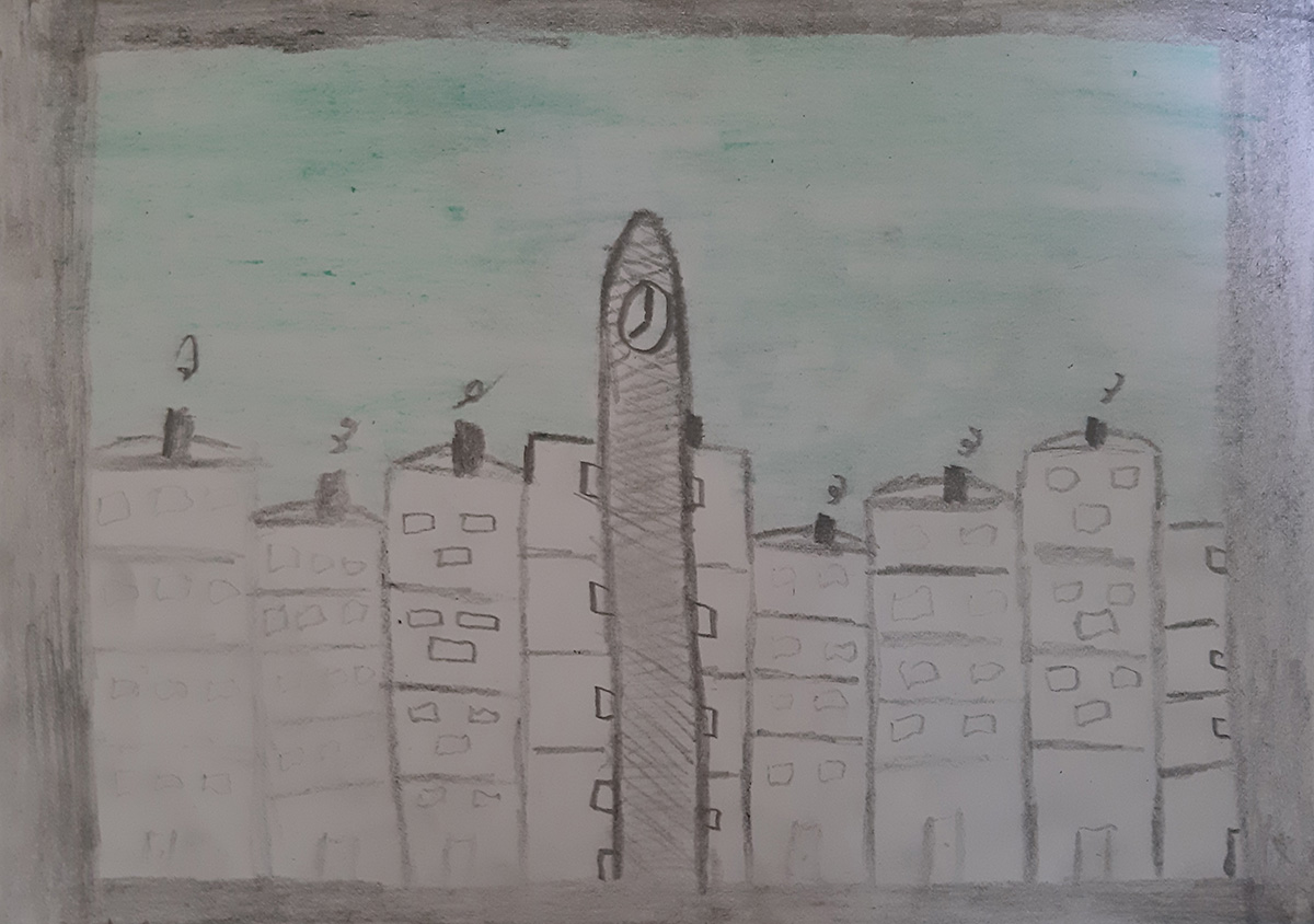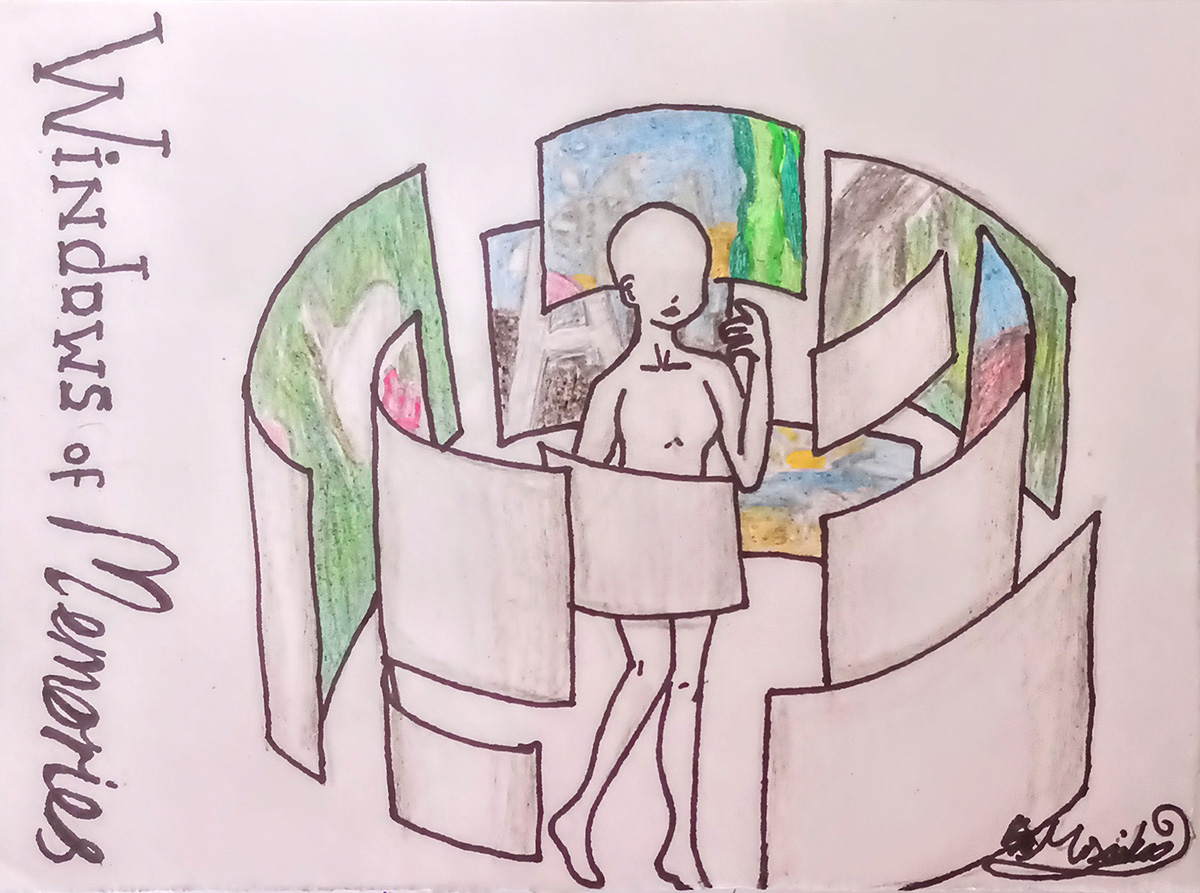 Marjhon (Year 8, Green School for Girls), Windows of Memories (Postcard Sent to Velorose from London, 2020) Felt Pen and Coloured Pencil on Paper (Unique) (Not for Sale)