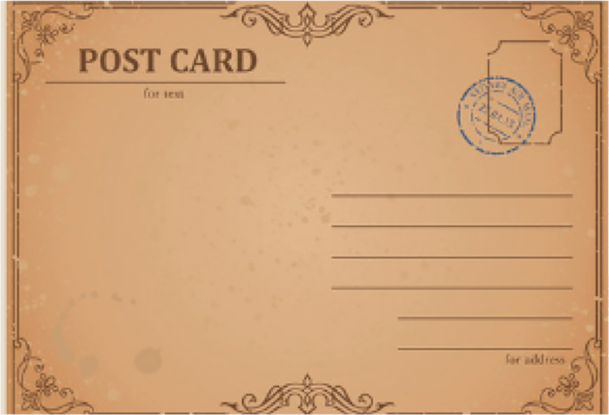 • Format: 10cm x 15cm / 4” x 6” / A6 / Postcard-sized; not in an envelope
