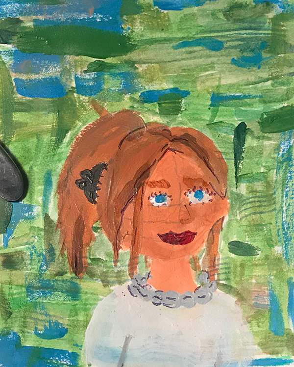 Lola (Year 8, Green School for Girls), Untitled (Self-Portrait) (Postcard Sent to Velorose from London, 2020) Paint (Not Unique) (Not for Sale)