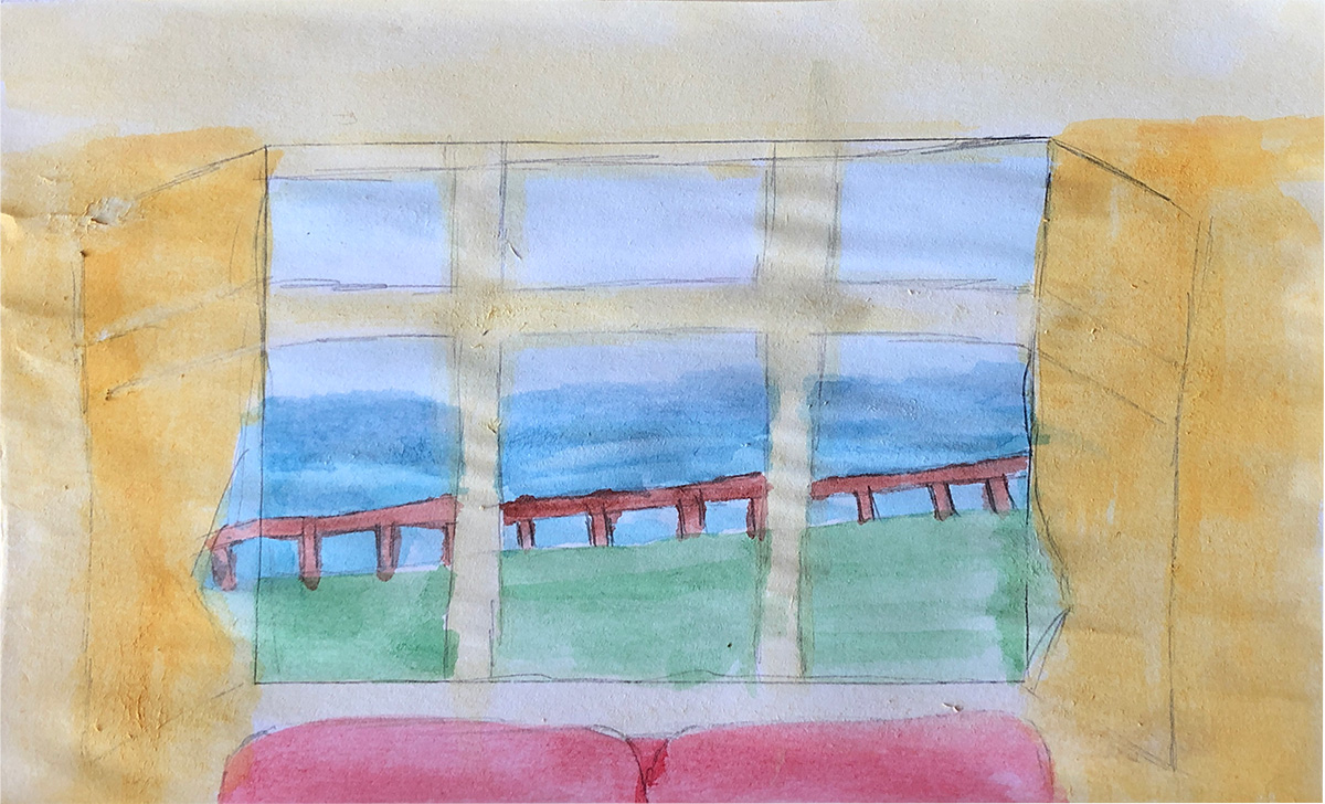 Adriana (Year 8, Green School for Girls), Untitled (Horizon) (Postcard Sent to Velorose from London, 2020) Pencil and Watercolour on Paper (Unique) (Not for Sale)