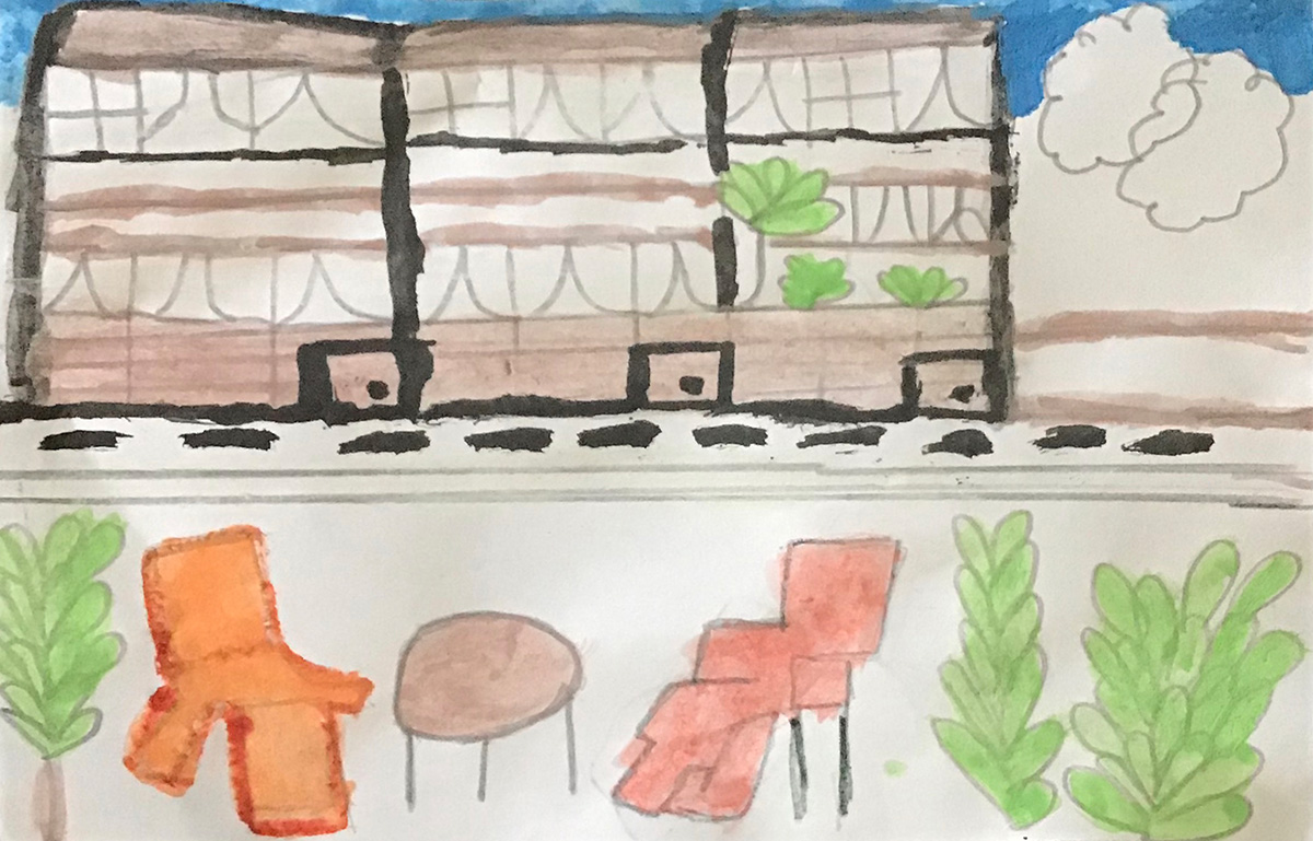 Alima (Year 8, Green School for Girls), Untitled (Outdoor Seating) (Postcard Sent to Velorose from London, 2020) Pencil and Watercolour Paint on Paper (Unique) (Not for Sale)
