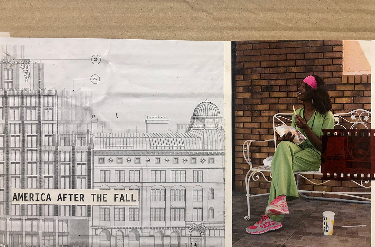 Eustace, Untitled (America after the Fall) (Postcard Sent to Velorose, 2020) Print, Magazine Page and Film Negative on Corrugated Card (Obverse) (Unique) (Not for Sale)