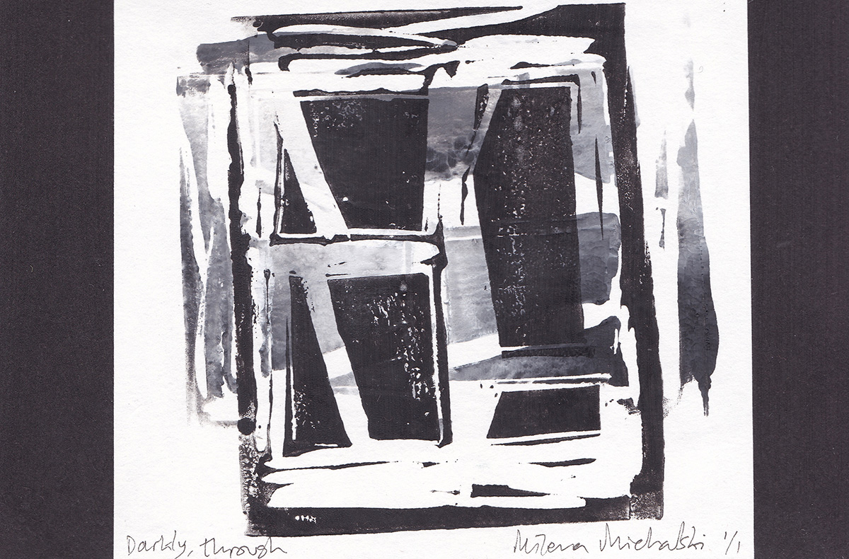 Milena Michalski, Darkly, Through (Postcard Sent to Velorose, 2020) Linocut Print with Ink on Paper on Card (Unique) (Not for Sale)