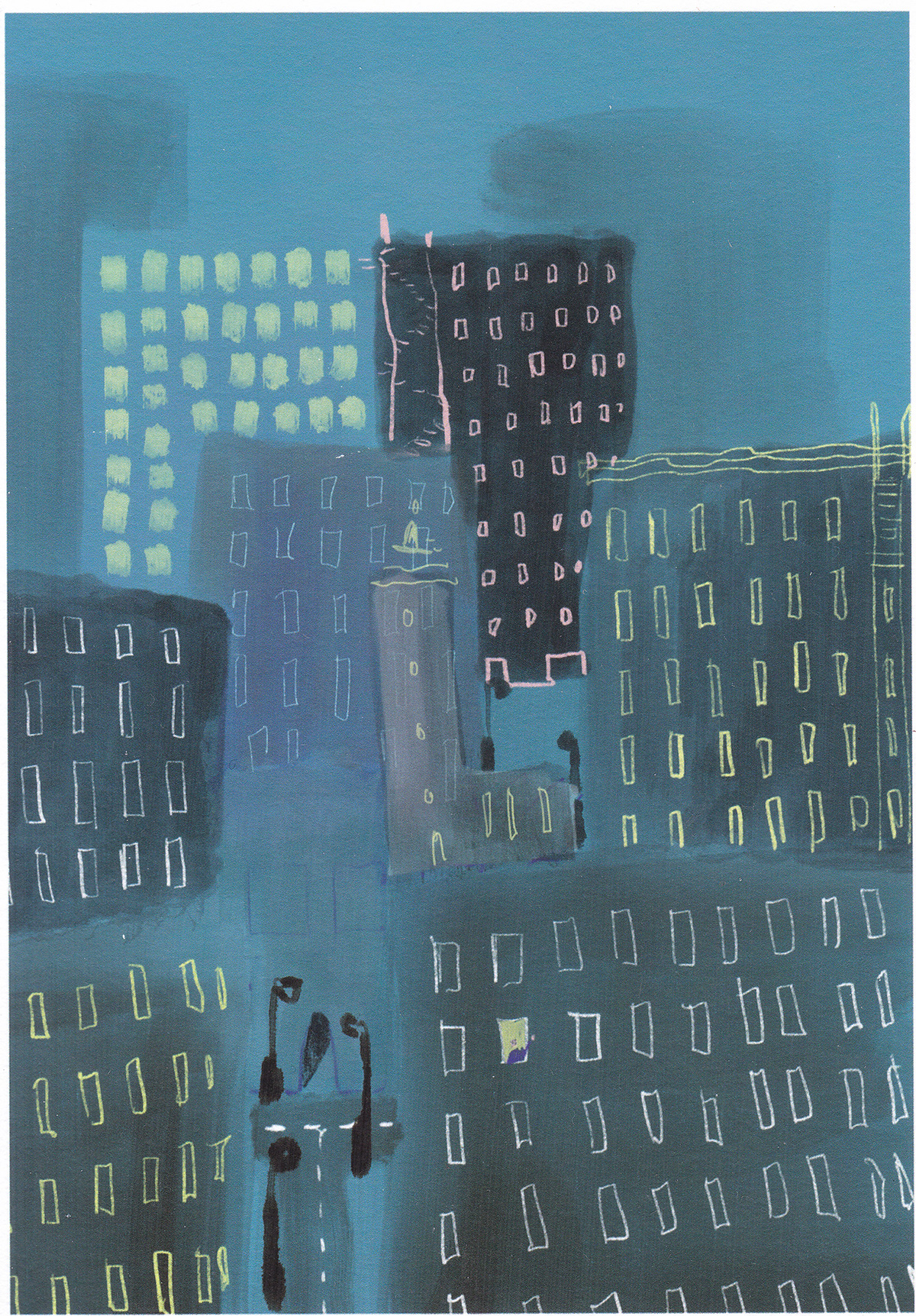 Shikha (Year 8, Green School for Girls), Untitled (City Beyond Curtains) (Postcard Sent to Velorose from London, 2020) Coloured Pencil (Unique) (Not for Sale)