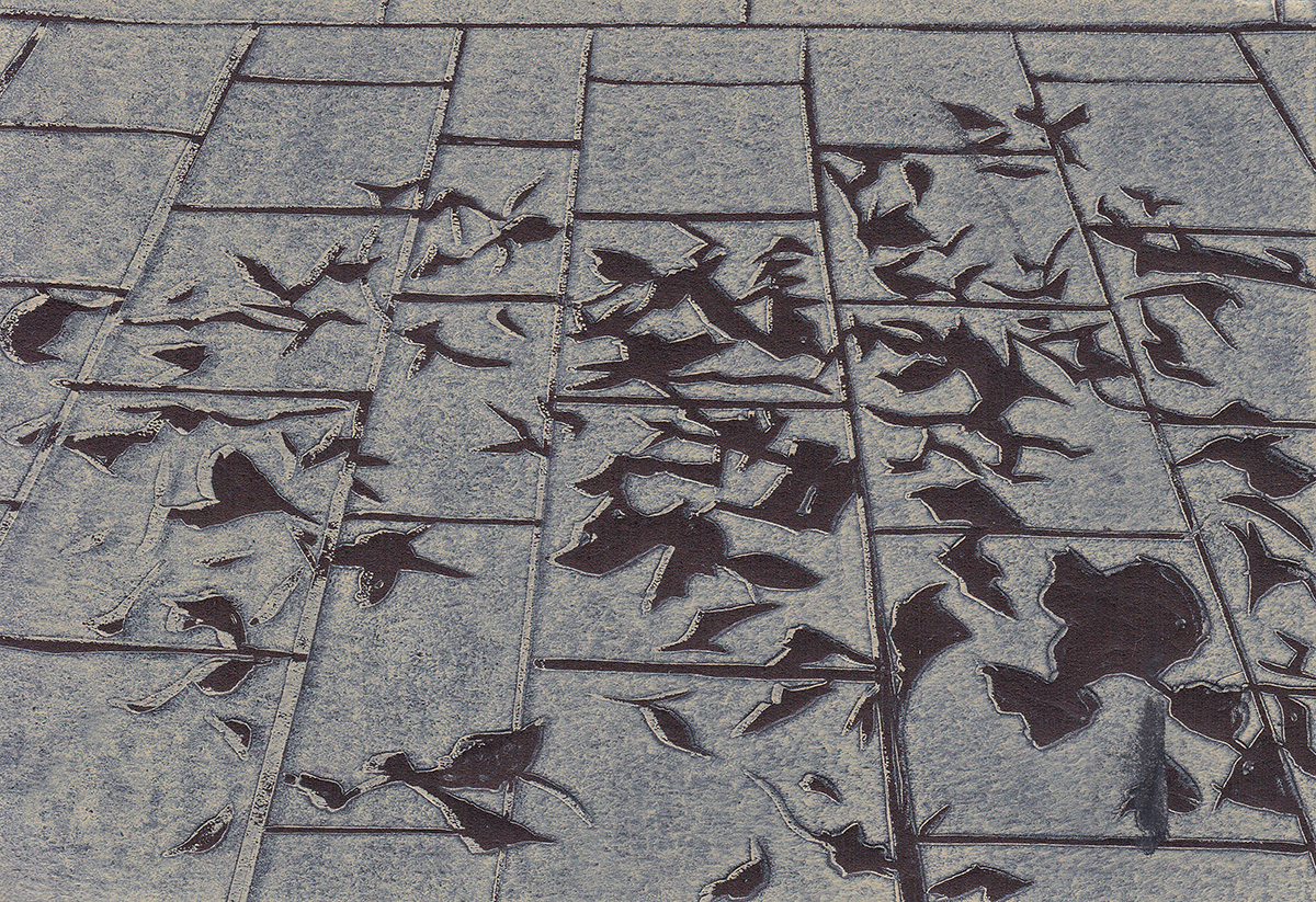 Alison Bernal, Open-Close (Postcard Sent to Velorose from London, 2020), Photopolymer, Blind Emboss and Chine Collé on Somerset Paper (Unique) (Not for Sale)
