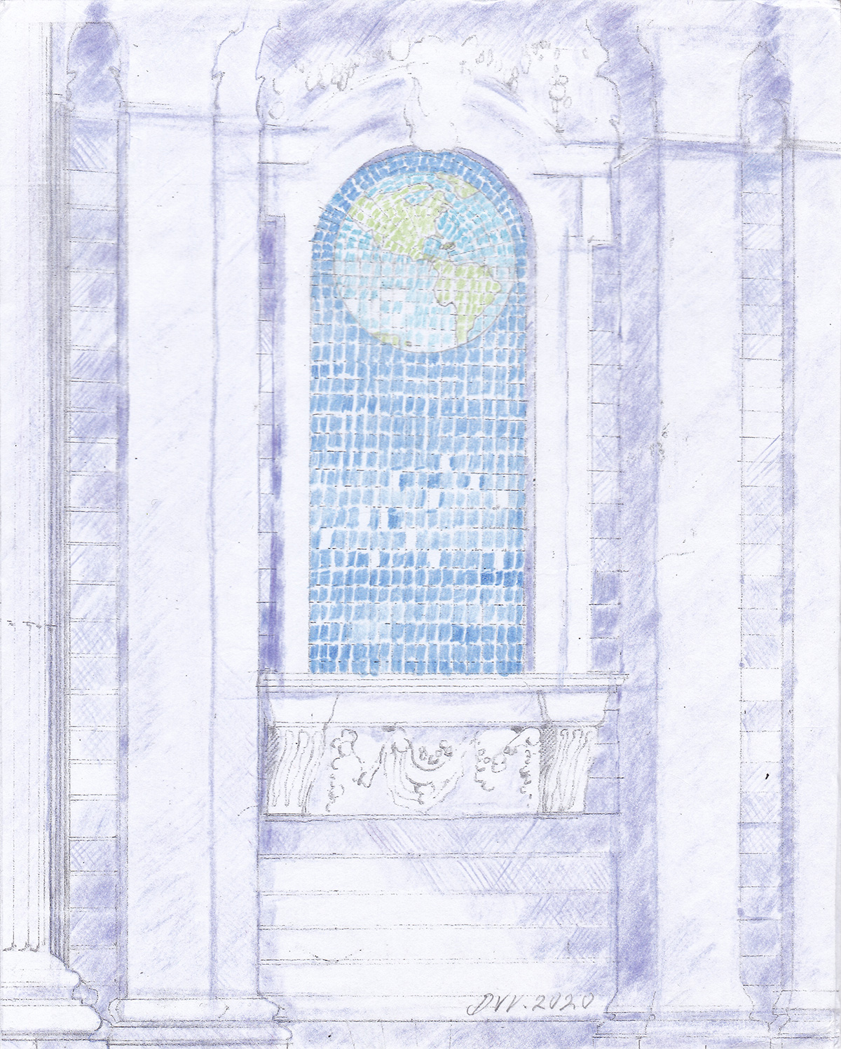 Dante Vanoli, World on the Window (Postcard Sent to Velorose from London, 2020) Coloured Pencil on Printed Paper on Card (Unique) (Not for Sale)