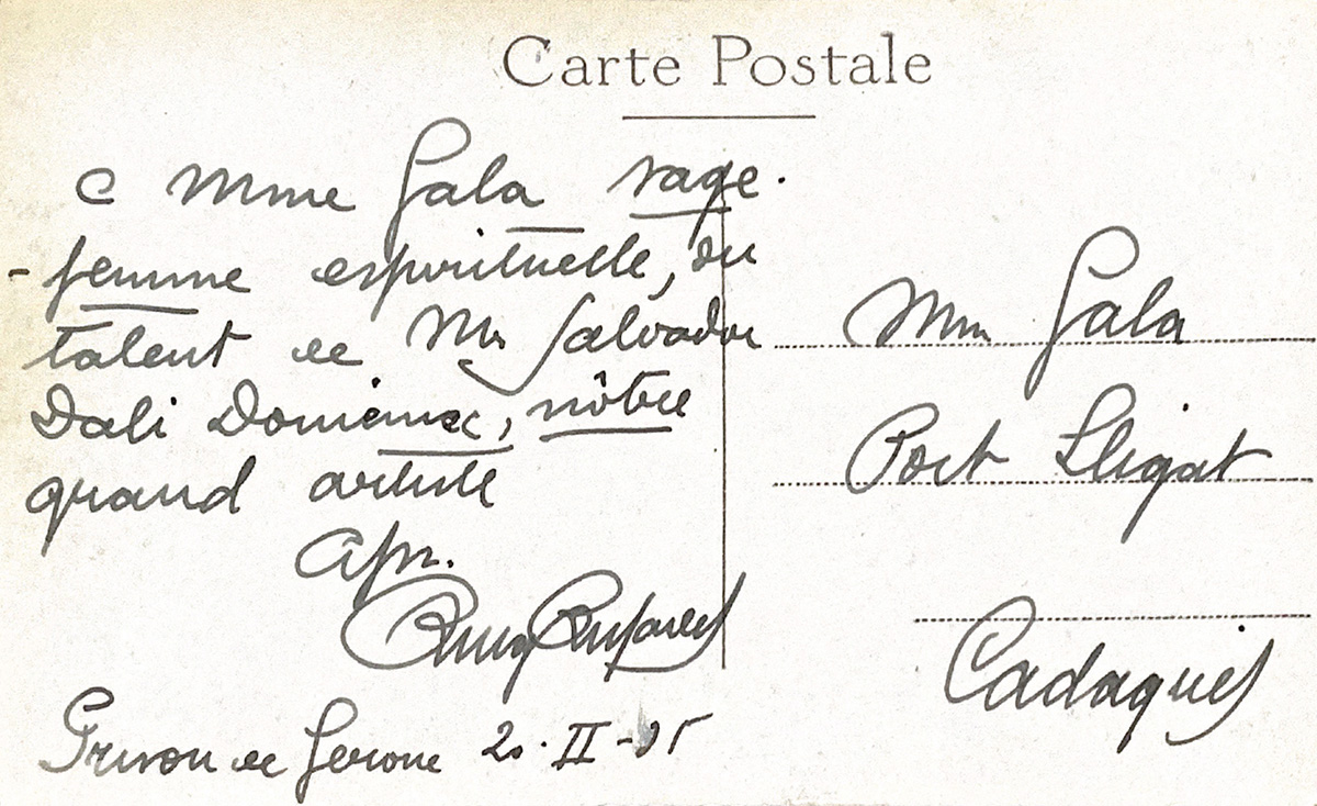 Basilinda, To Gala, About Salvador Dalí (Vintage Postcard from Paul Eluard’s Collection, Addressed to His Then Wife, Sent to Velorose from London, 2020) (Reverse) (Unique) (Not for Sale)