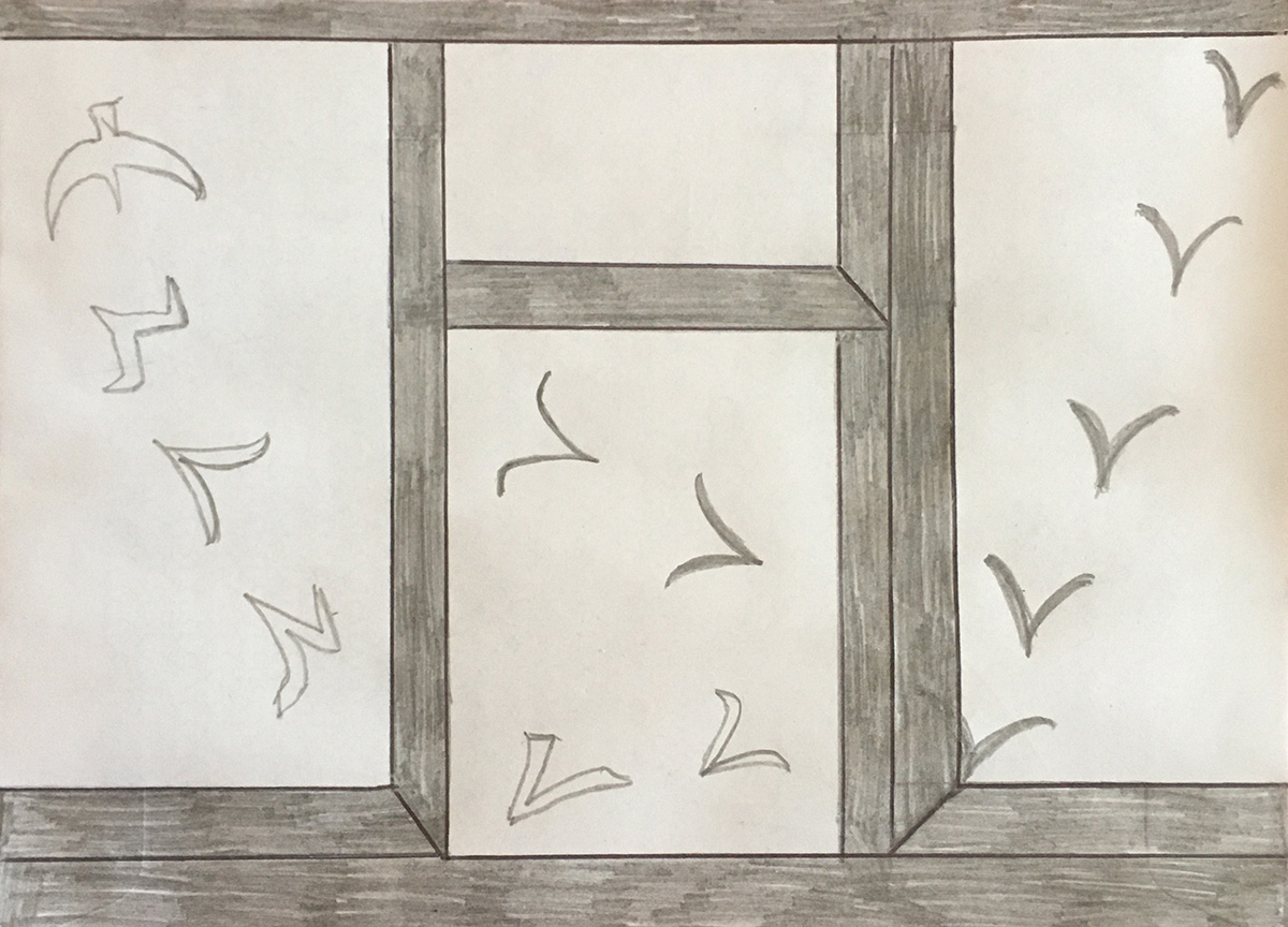 Ira (Year 9, Green School for Boys), Untitled (The Birds) (Postcard Sent to Velorose from London, 2020) Graphite on Paper (Unique) (Not for Sale)