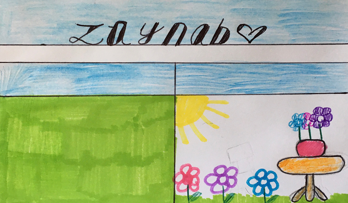 Zaynab (Year 8, Green School for Girls), Untitled (Outside-In) (Postcard Sent to Velorose from London, 2020) Coloured Pencil and Felt Pen on Paper (Unique) (Not for Sale)