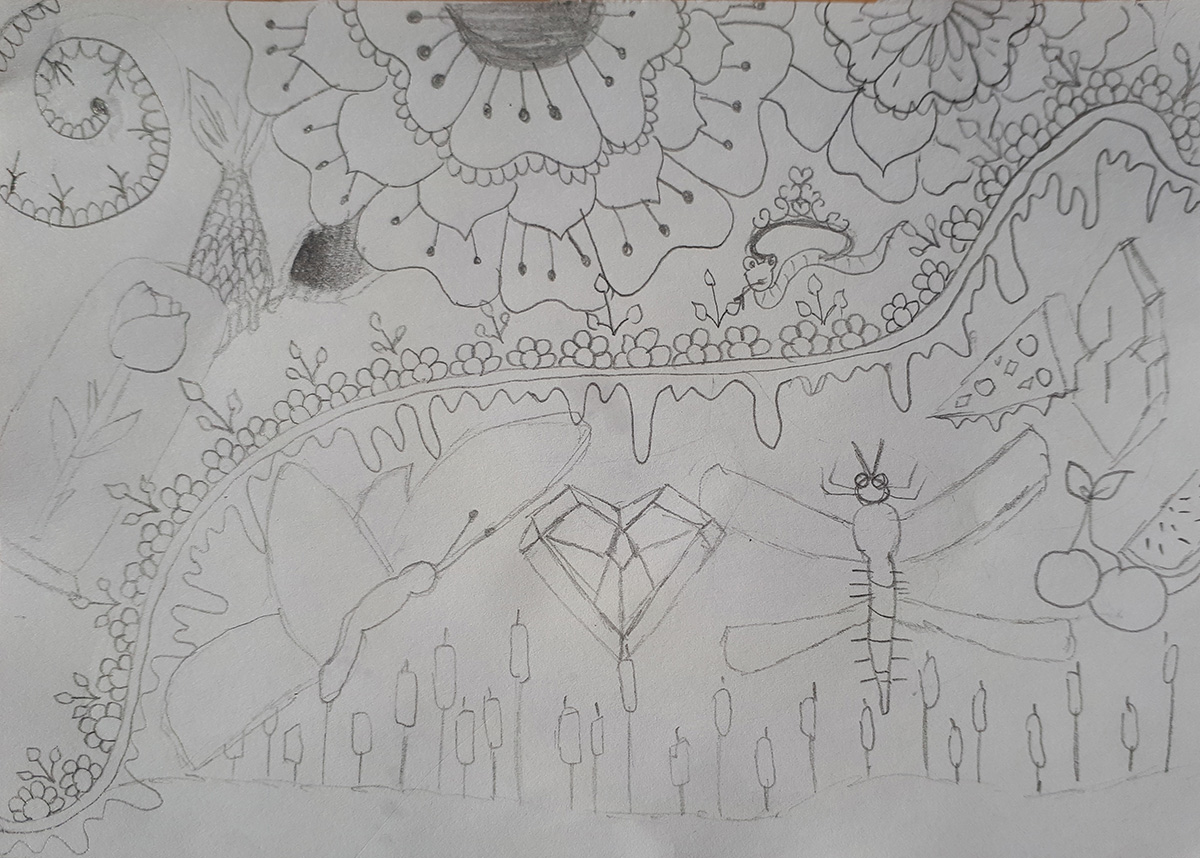 Amon (Year 9, Green School for Boys), Postcard Concept (Postcard Sent to Velorose from London, 2020) Felt Pen and Graphite on Paper (Unique) (Not for Sale)