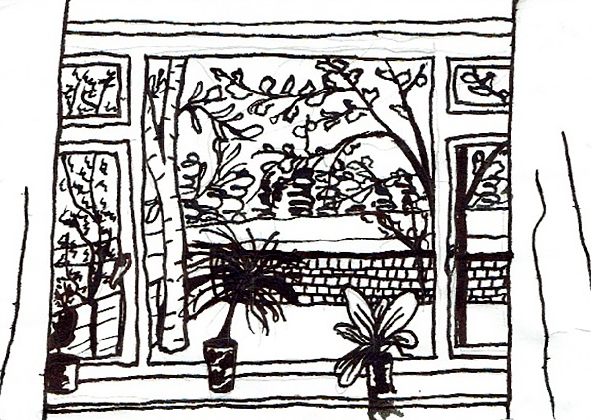 Rebecca (Year 8, Green School for Girls), Untitled (Window I) (Postcard Sent to Velorose from London, 2020) Felt Pen and Graphite on Paper (Unique) (Not for Sale)