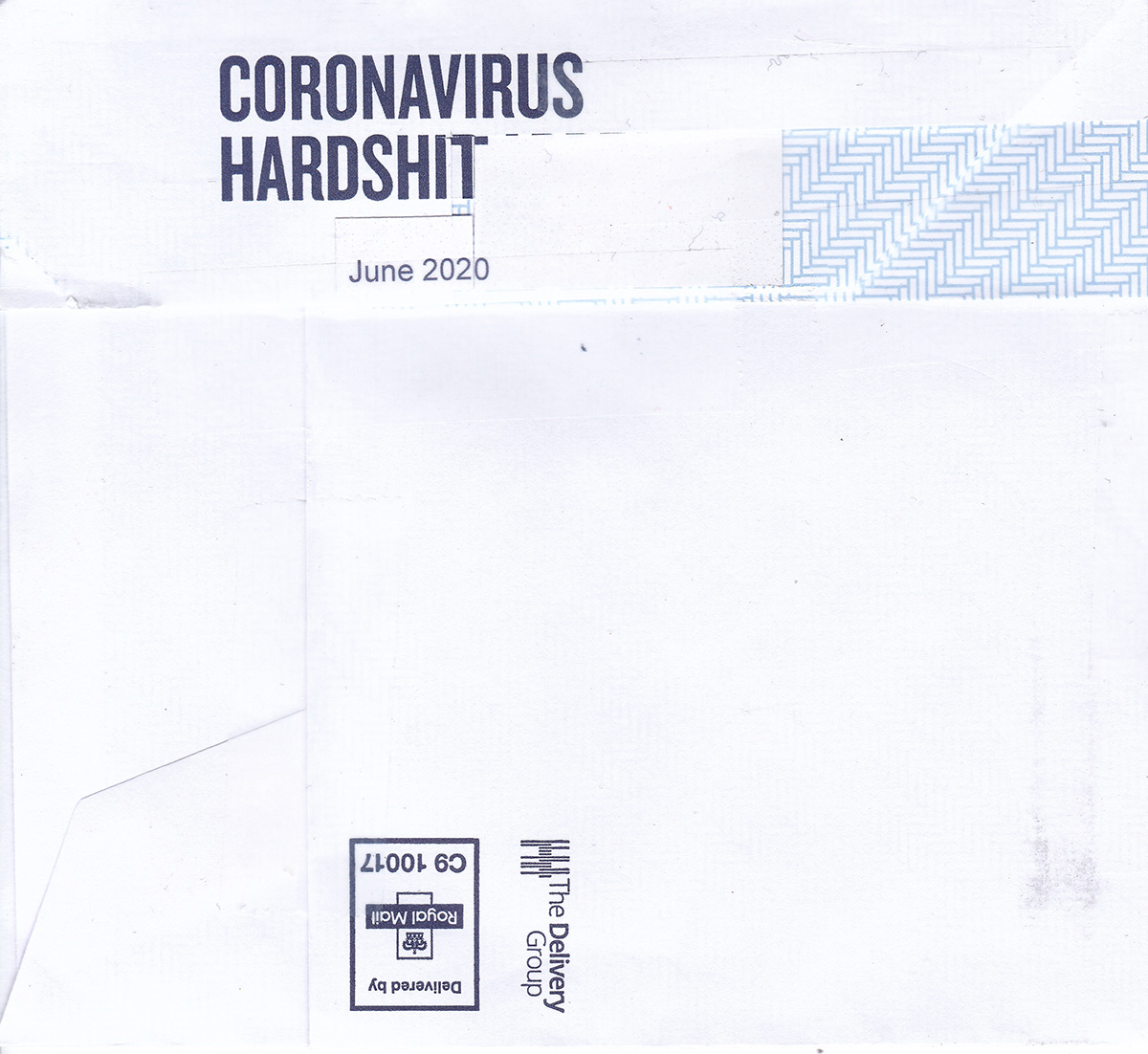 Anonymous, The Future is Bright (Coronavirus Hardshit) (Postcard Sent to Velorose from London, 2020) Collaged Recycled Envelope (Reverse) (Unique) (Not for Sale)