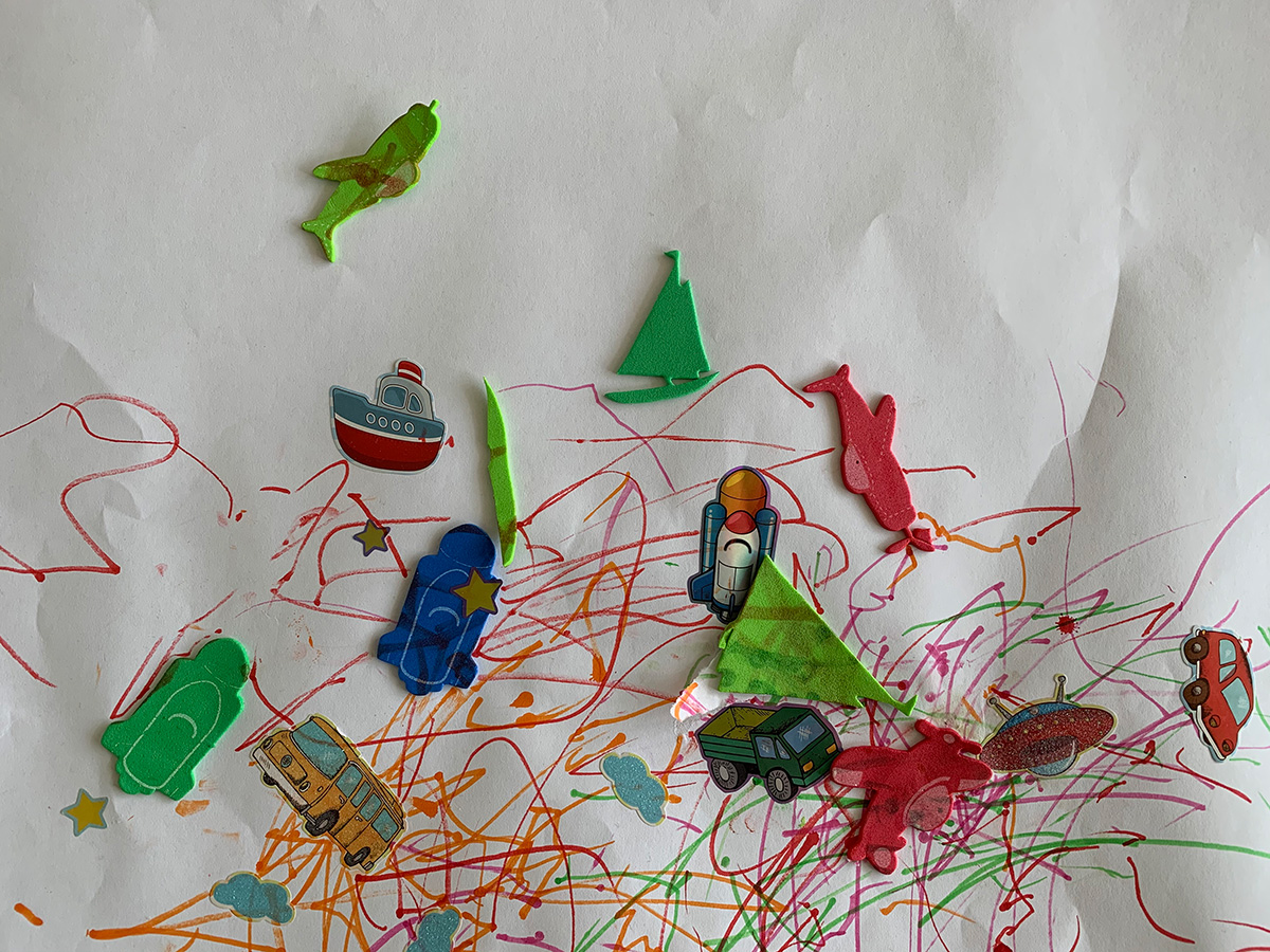 Florence Stokes (Aged 21 Months), Wash Hands (Triptych) (Postcards Sent to Velorose from London, 2020), Paint on Cards with Tractor (3 Unique Postcards) (Not for Sale) NB: Artist Named and Ordered the Triptych