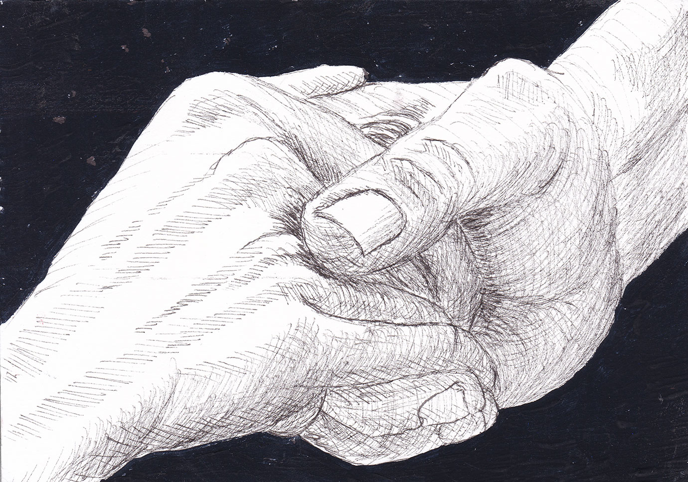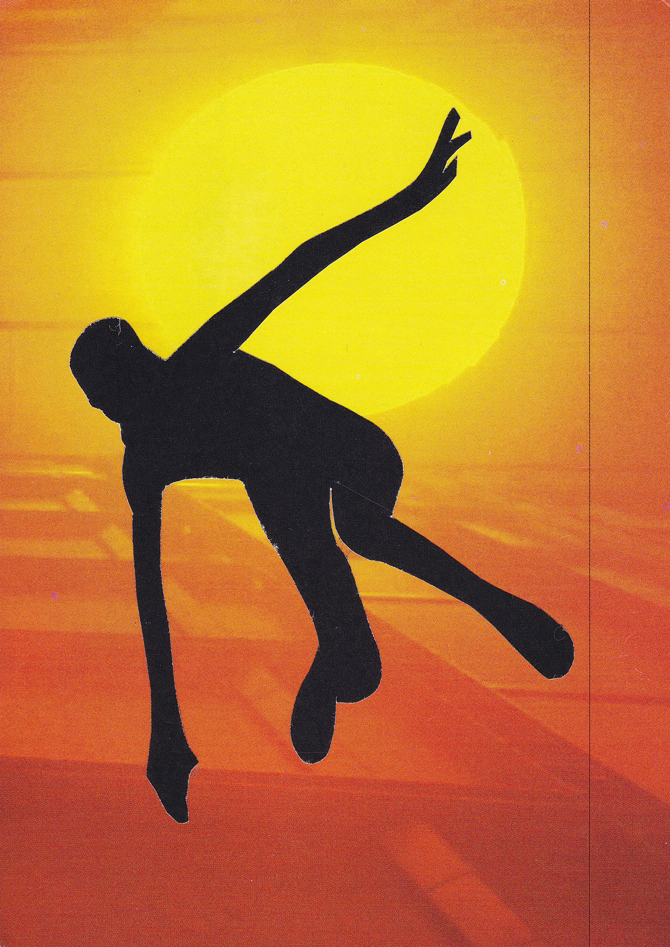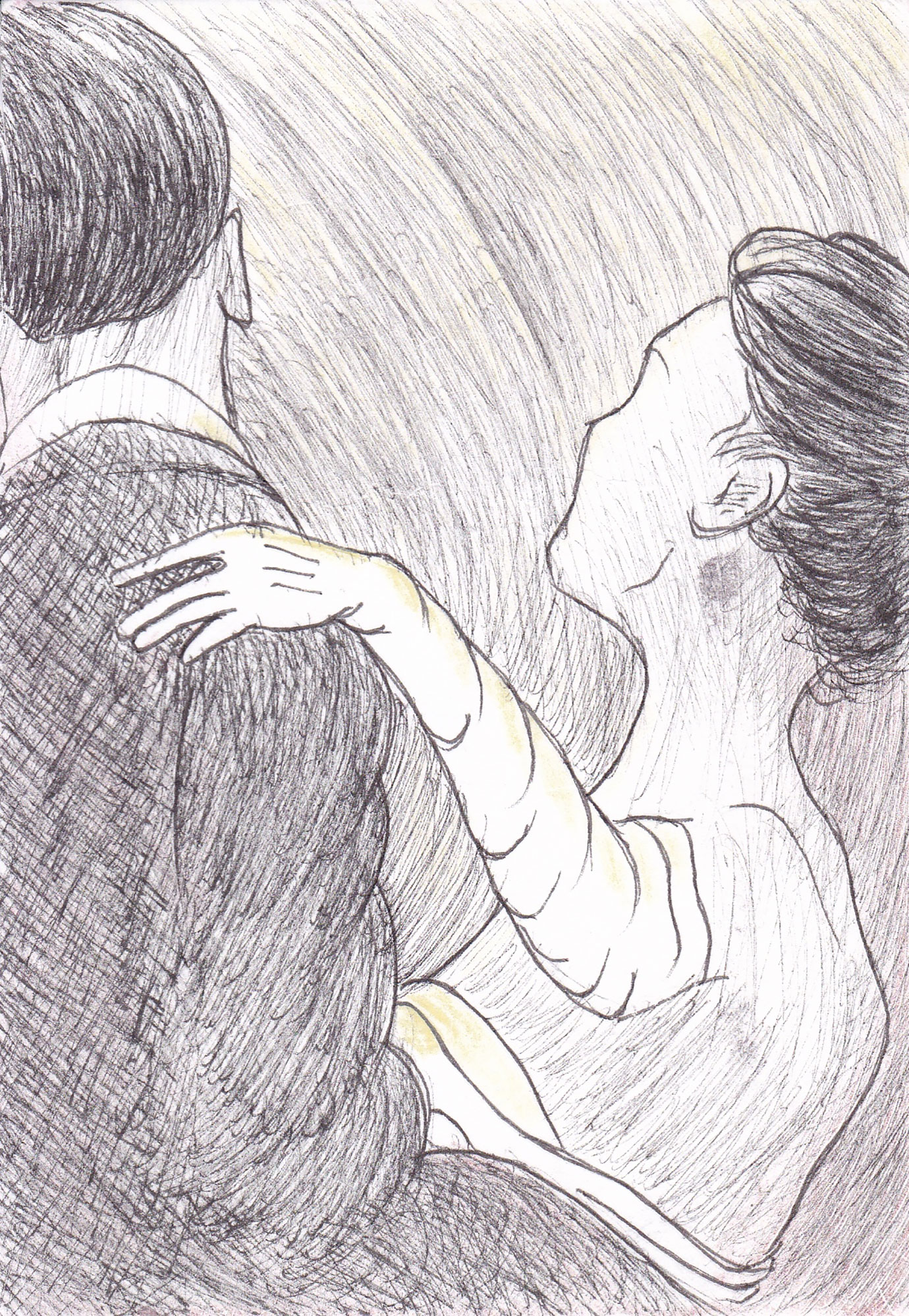 John Ramsey, Dance Me Through the Panic ’til I’m Gathered Safely In (with Acknowledgements to Jack Vettriano and Leonard Cohen) (Postcard Sent to Velorose from London 2020), Coloured Pencil on Card (Unique) (Not for Sale)