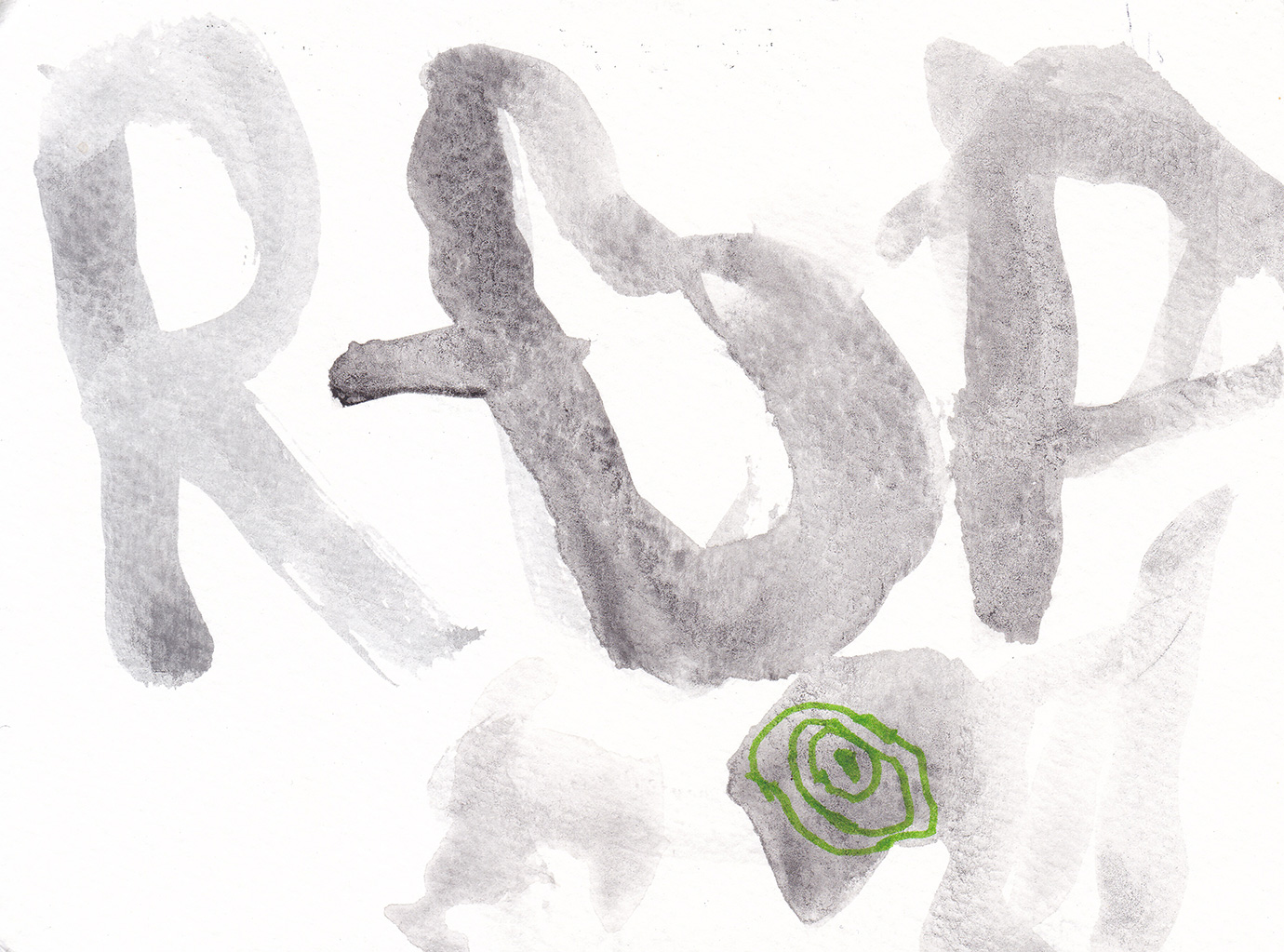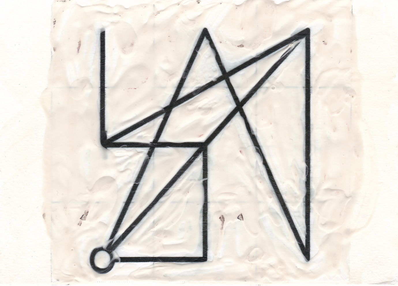 Evie Salmon, A Sigil of Gratitude (Here’s to All the Near Misses) (Postcard Sent to Velorose from Cambridge 2020), Ink and Acrylic Paint on Original Printed Sigil on Watercolour Postcard (Unique) (Not for Sale)