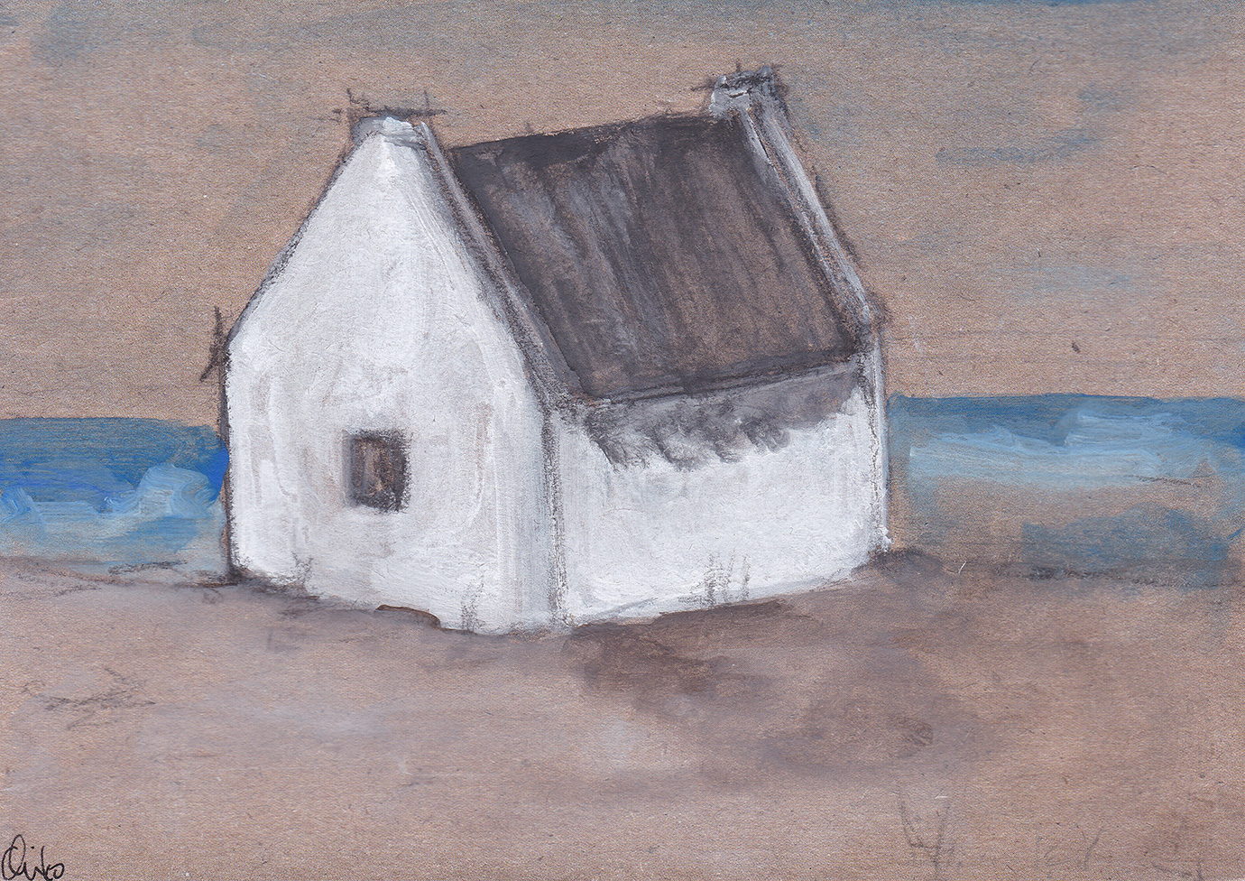 Chiko Makone, A White Old Slave Hut in Bonaire (Designed to Crawl in, and Never to Stand - Defying the System) Part 2 (2020) (Sent to Velorose 2020), Watercolour on Card, Unique, Not for Sale