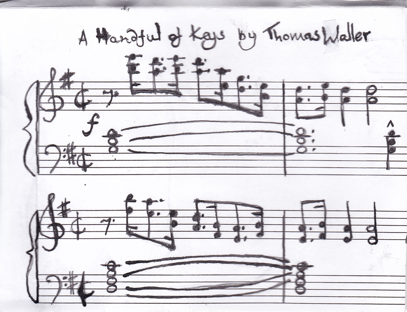 Melissa Green and Harvey Brown, Ain’t Misbehaving (sic) (Sent to Velorose from London 2020), Ink on Printed Music Paper Collaged on Card, Unique, Not for Sale