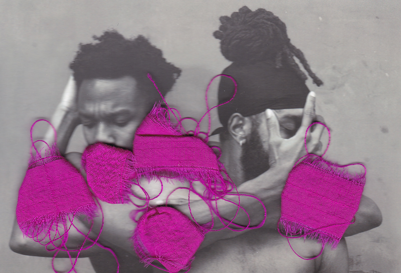 Golden Yogini, Untitled (Back to the Fuschia / Ruins VI) (Sent to Velorose from London 2020), Postcard from the ‘Ruins’ Exhibition Adulterated with Silk, Unique, Not for Sale