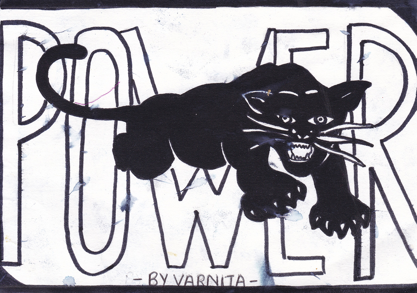 VJ (Varnita Jain), Untitled (Black (Panther) Power) (Sent to Velorose from London 2020), Pen on Paper, Unique, Not for Sale