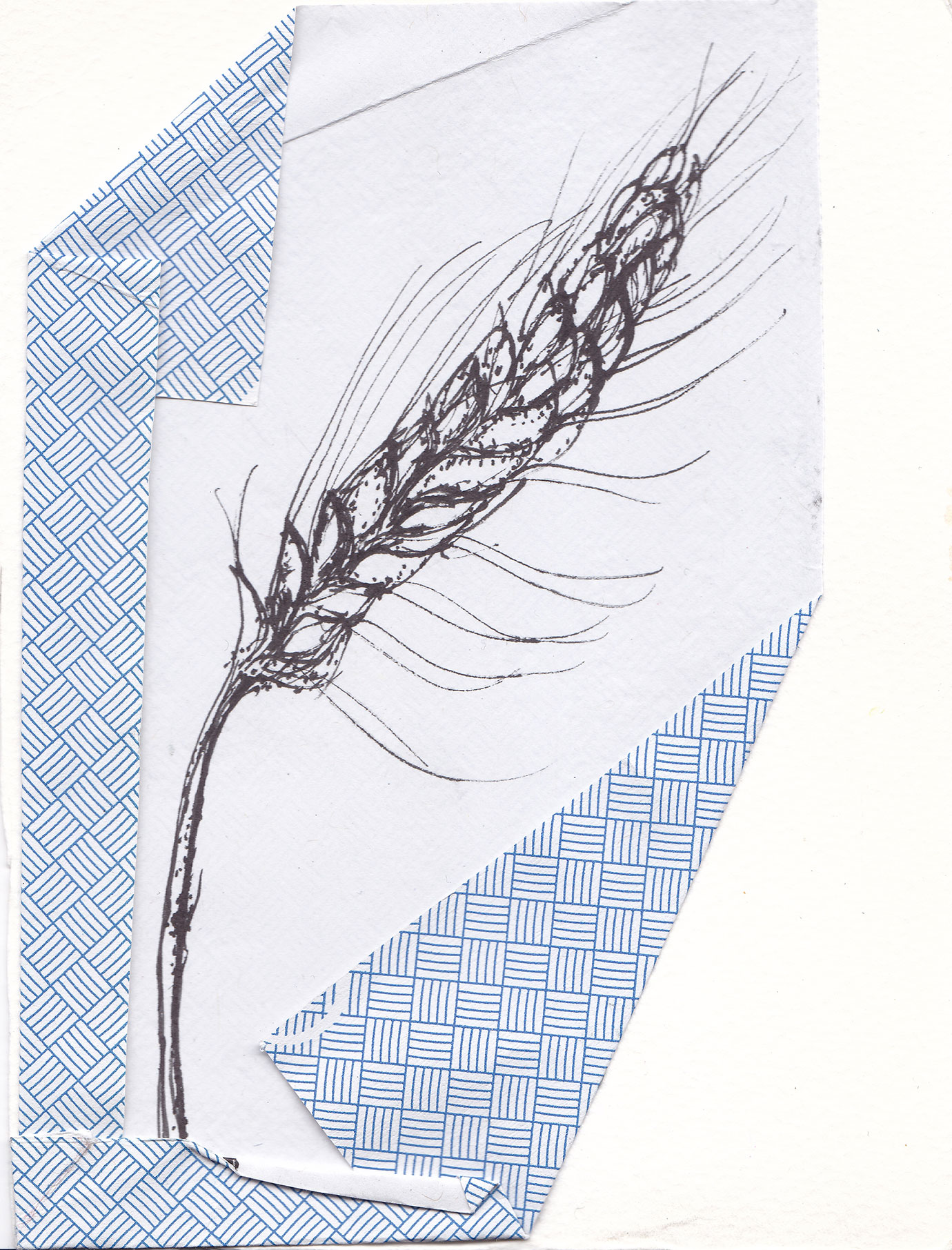 M, A Blade of Wheat on Back of an Envelope (Postcard Sent to Velorose from London 2020), Pen on Envelope on Watercolour Card (Unique) (Not for Sale)