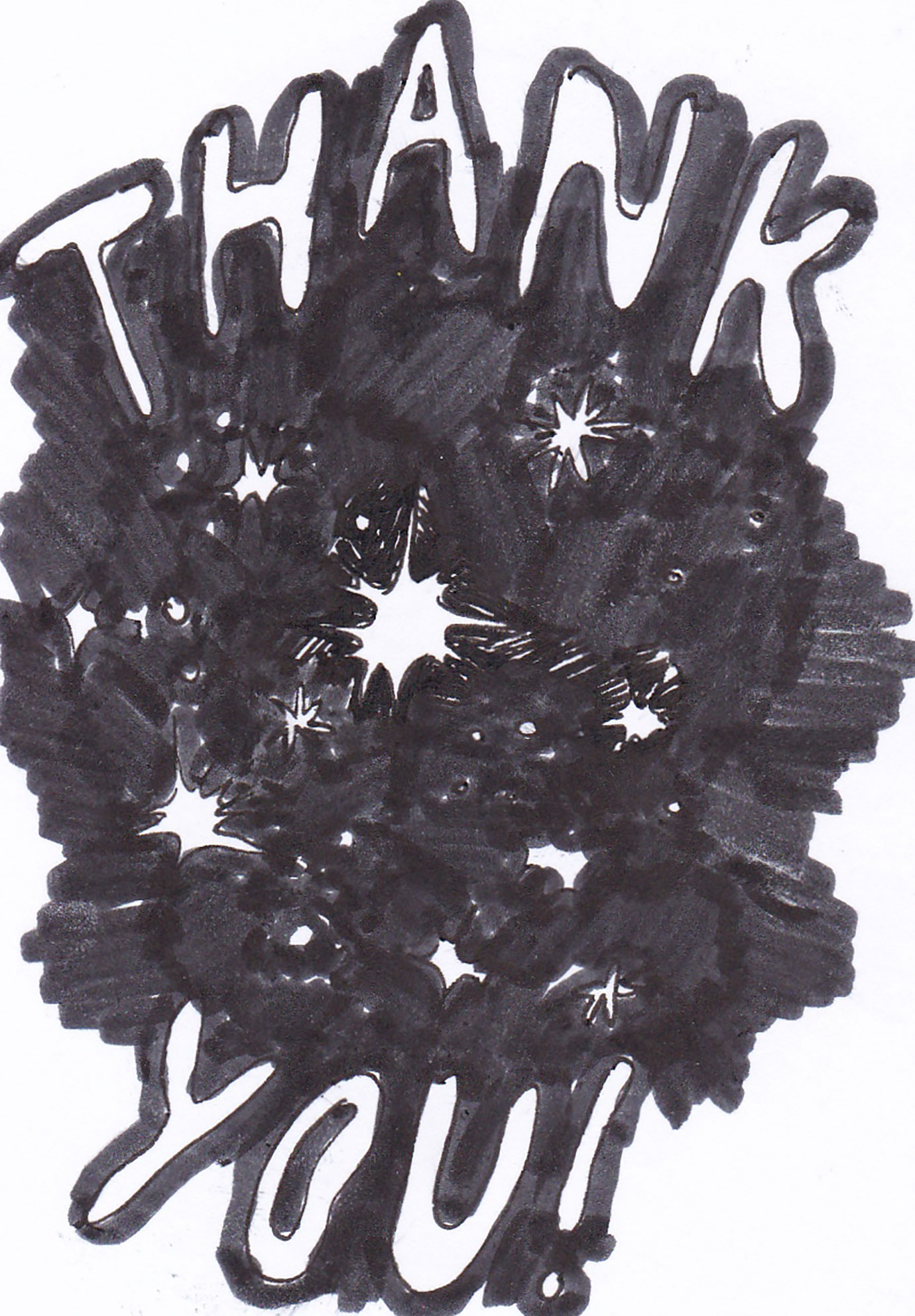 M, Thanks (Postcard Sent to Velorose from London 2020), Felt Tip Pen on Bockingford Card (Unique) (Not for Sale)