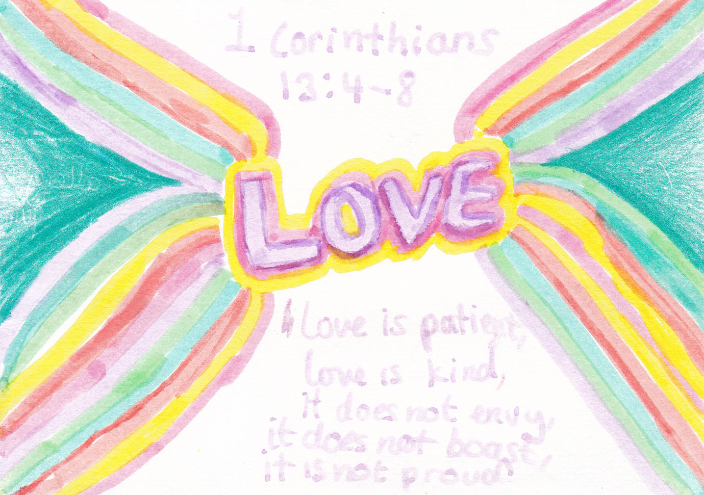 Martina 8WTGSG, ‘Love’ is Blind (Postcard Sent to Velorose from London 2020), Felt Pen, Highlighter Pen and Coloured Pencil on Cartridge Paper (Unique) (Not for Sale)