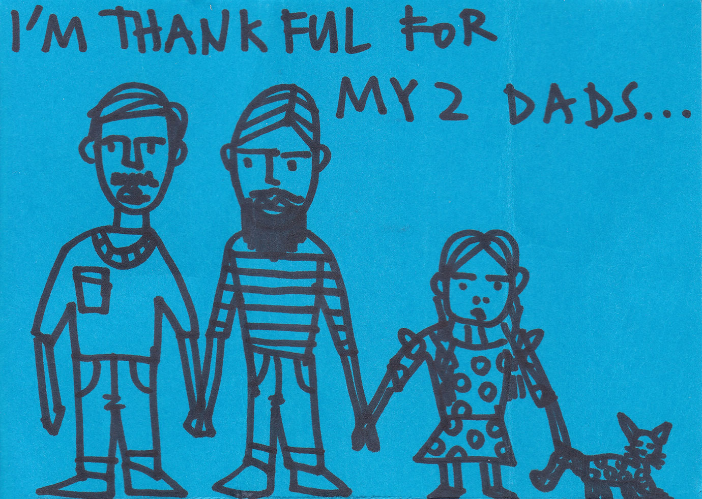 Daisy de Villeneuve, I’m Thankful for my 2 Dads… (Postcard Sent to Velorose from London 2020), Felt Pen on Card (Unique) (Not for Sale)