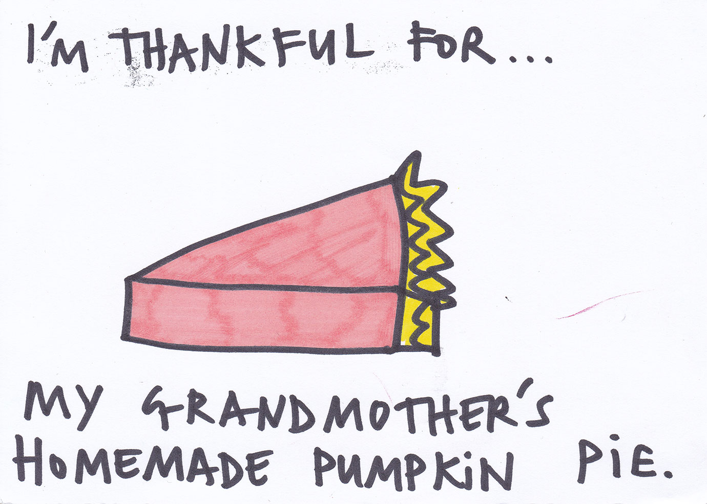 Daisy de Villeneuve, I’m Thankful for my Grandmother’s Homemade Pumpkin Pie (Postcard Sent to Velorose from London 2020), Felt Pen on Card (Unique) (Not for Sale)