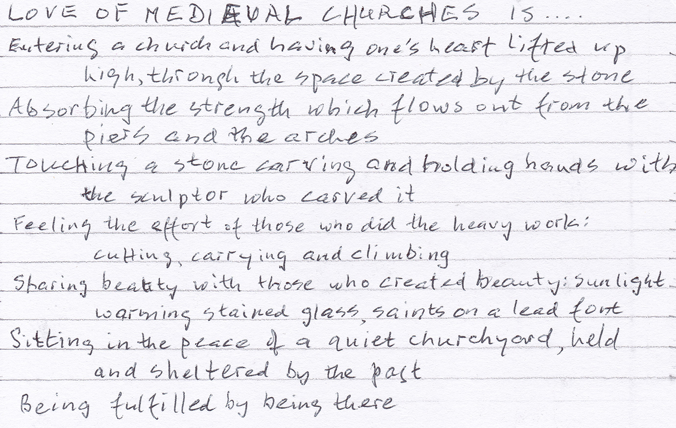 Amsterdammer, Love of Medieval Churches is... (Postcard Sent to Velorose from London 2020), Biro on Postcard (Unique) (Not for Sale)