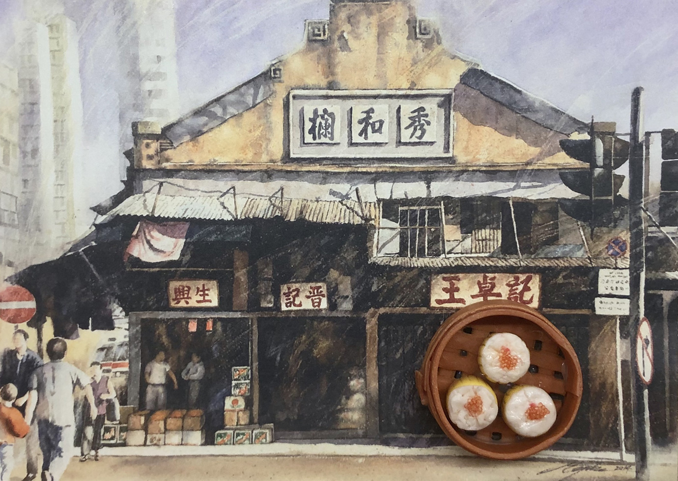 Ester Voy, Hong Kong Corona Edit #3 (The Food Issue) (Postcard Sent to Velorose from Hong Kong 2020), Plastic Toy Food (Dim Sum in Steamer) on Tourist Postcard (Unique) (Not for Sale)
